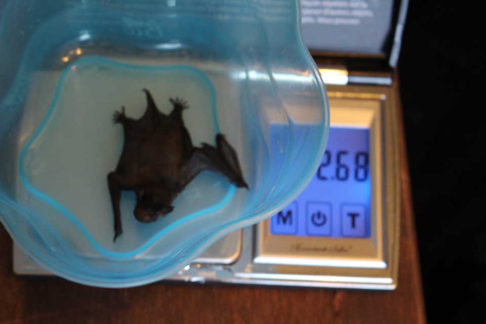 Das kleinste der Tiere ist vor kurzem in Duchroth gefunden worden. Kerstin Krämer trägt es in einem rosa Säckchen, das sie mit einer Sicherheitsnadel an ihrer Kleidung befestigt hat, mit sich herum, da das Tier noch Körperwärme braucht. Es ist an einer Hauswand gefunden worden. Mittlerweile hat es zugenommen und wiegt etwas mehr als eine 1-Cent Münze. „Manchmal flüchten die Fledermäuse bei extremer Hitze aus ihren Quartieren. Dann fallen die kleinen gerne mal raus oder sie gehen auf dem Flug verloren. In einem solchen Fall eine Rückführung zu versuchen, ist nicht einfach.“