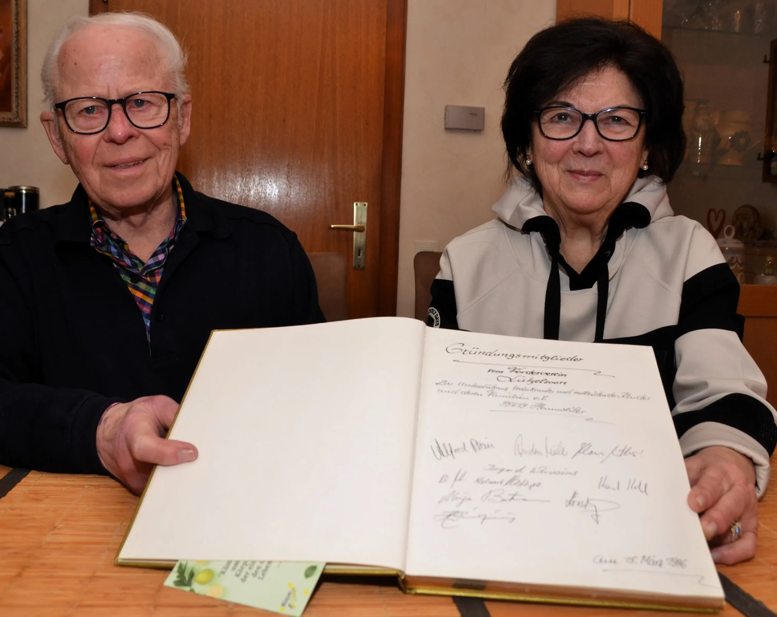 Herbert und Ingrid Wirzius mit der Unterschriftenliste für die Gründung des Fördervereins Lützelsoon am 15. März 1996. Foto: Armin Seibert