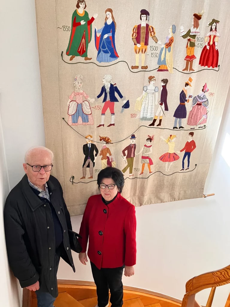Auf Schloss Dhaun begegnet man auf Schritt und Tritt der Geschichte. Ein reich gestickter Wandbehang blendet auf die Geschichte des über 800 Jahre alten Schlosses zurück. Foto: Armin Seibert.